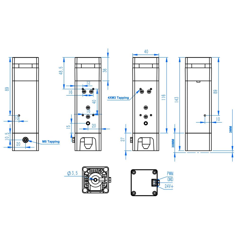 10W Optical Power Laser Cutter Module 450nm, 24Vdc | TwoTrees