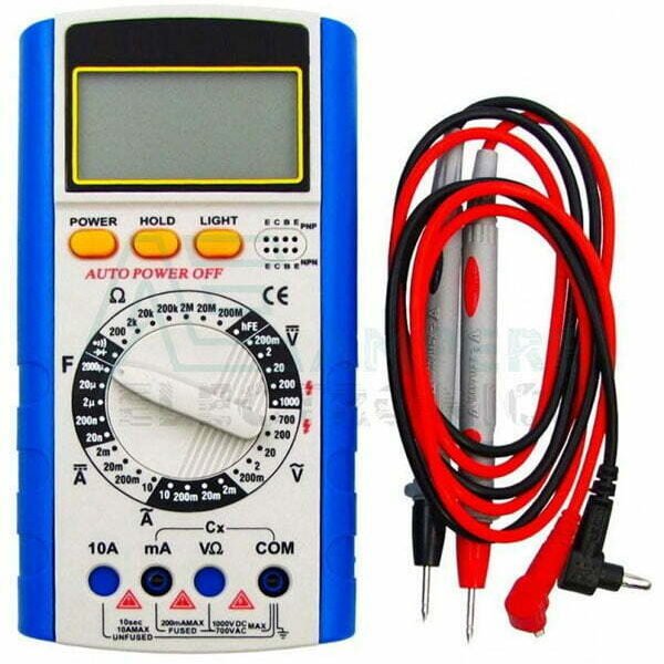 This digit multimeter for measuring DC and AC Voltage, DC and AC current, Resistance, Diode, Transistor, Frequency, Capacitance and Continuity Test with battery.