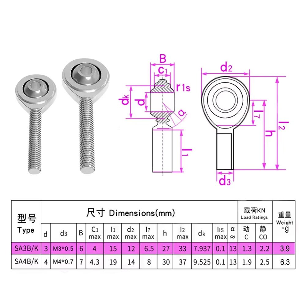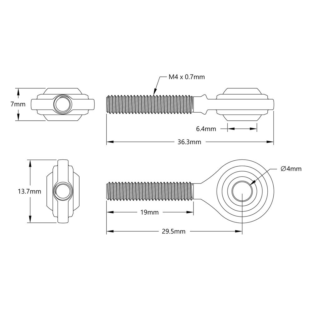 M4 Male Fish Eye Rod End Bearing SA4T/K